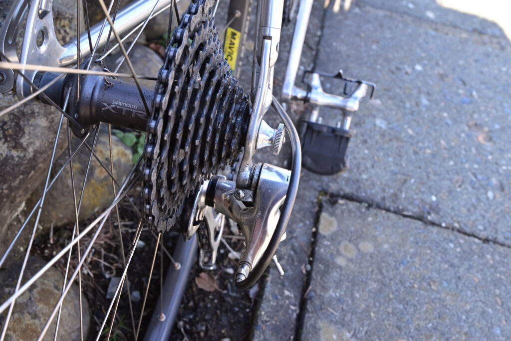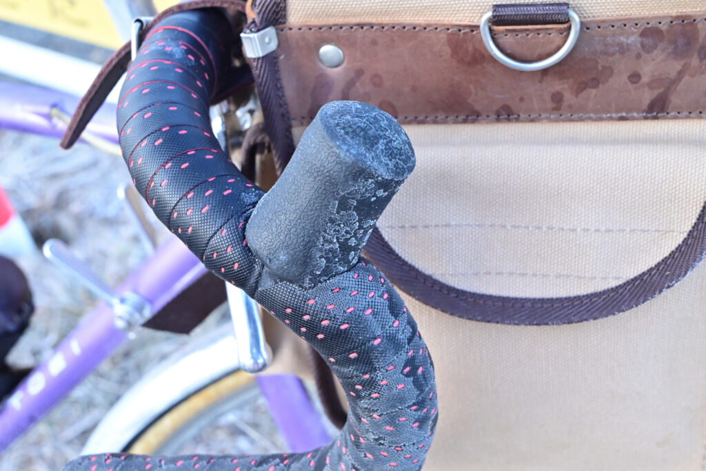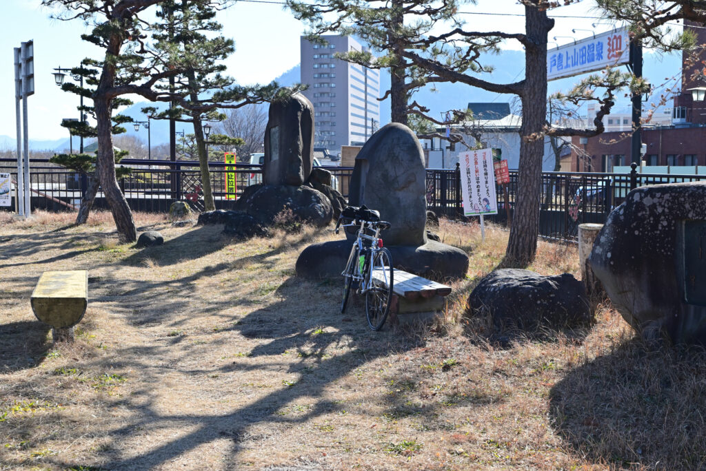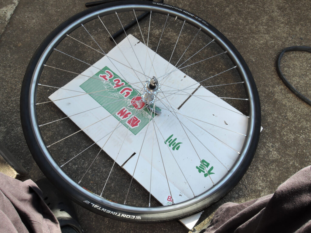 山本勘助の墓を過ぎたころ、なんとなくペダルが重く、タイヤの摩擦音が高い。前輪を覗いて見ると若干タイヤが太く見える。そうこうしている内にゴトゴト・・・パンクです。