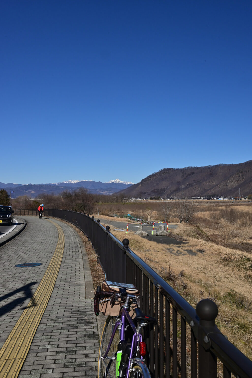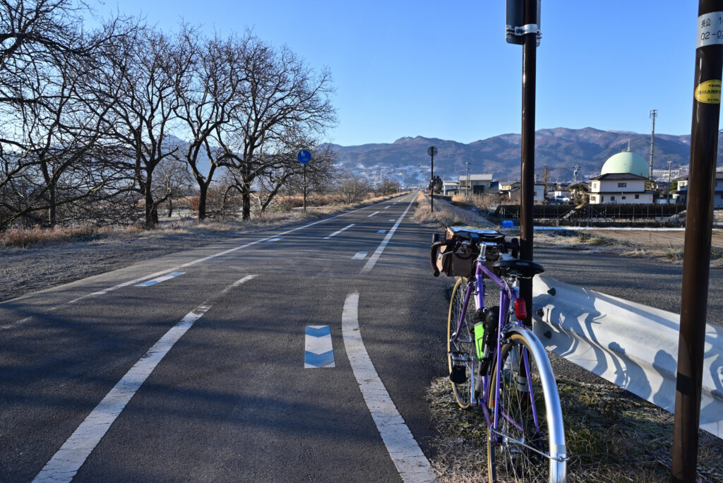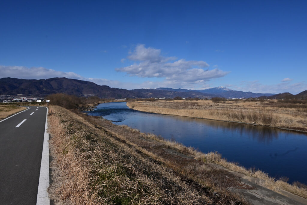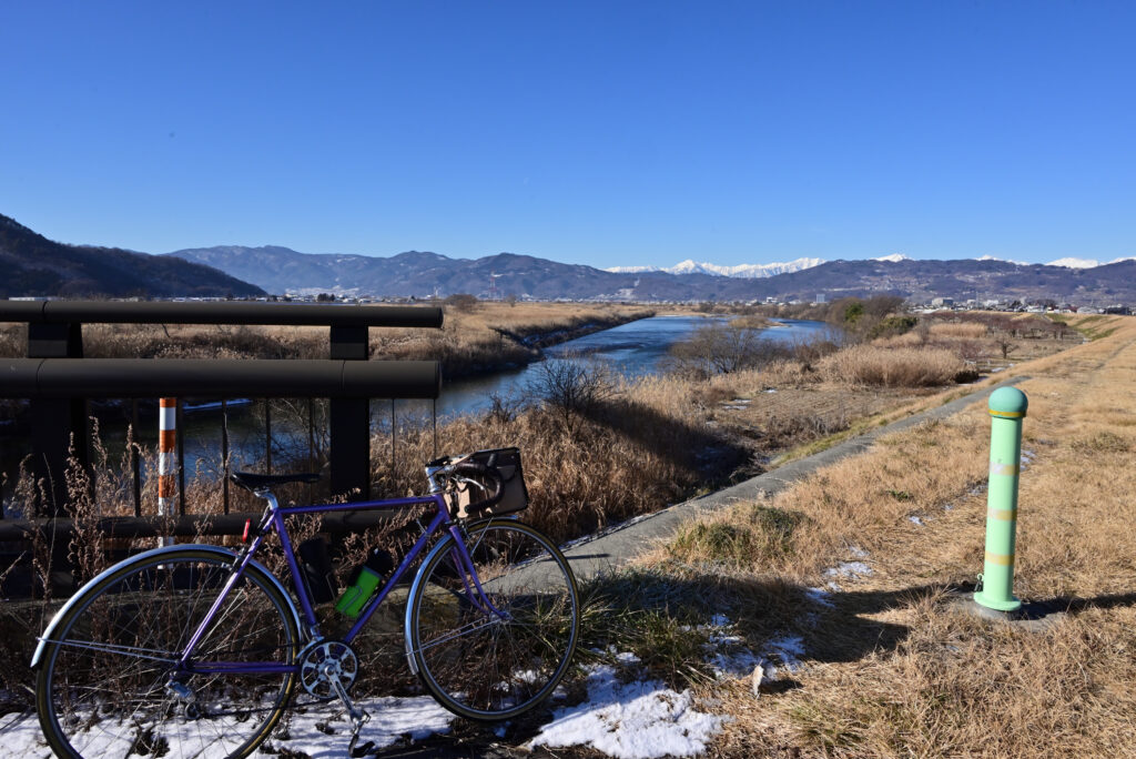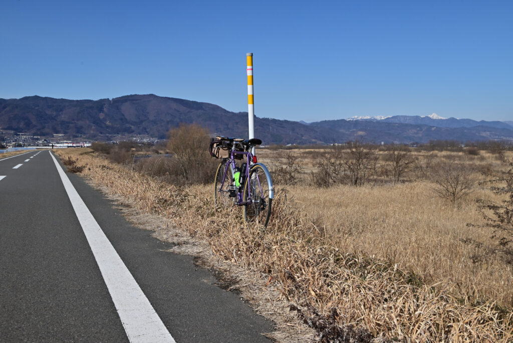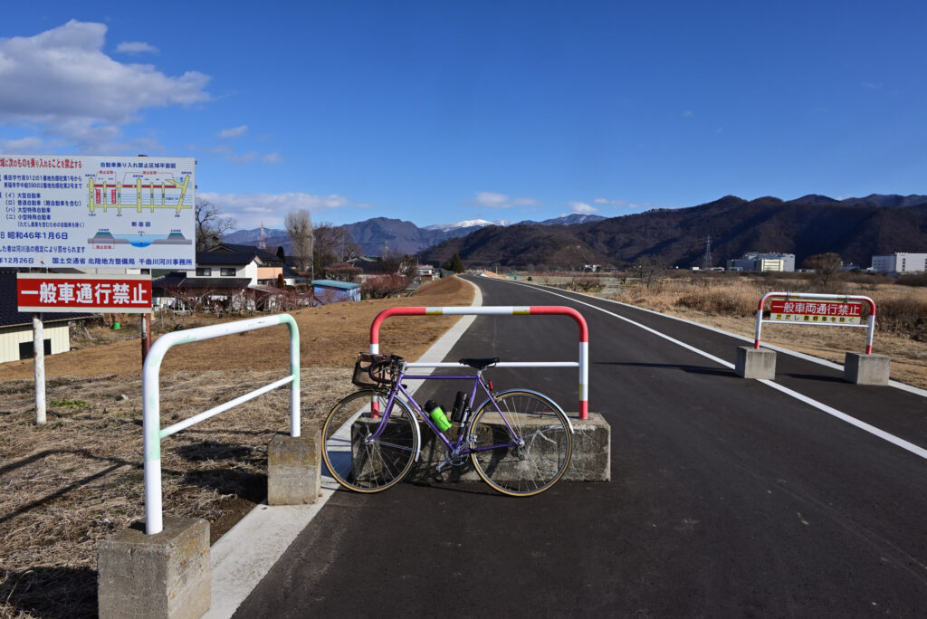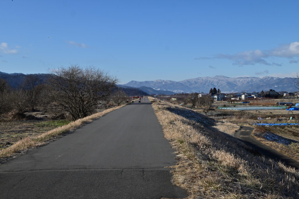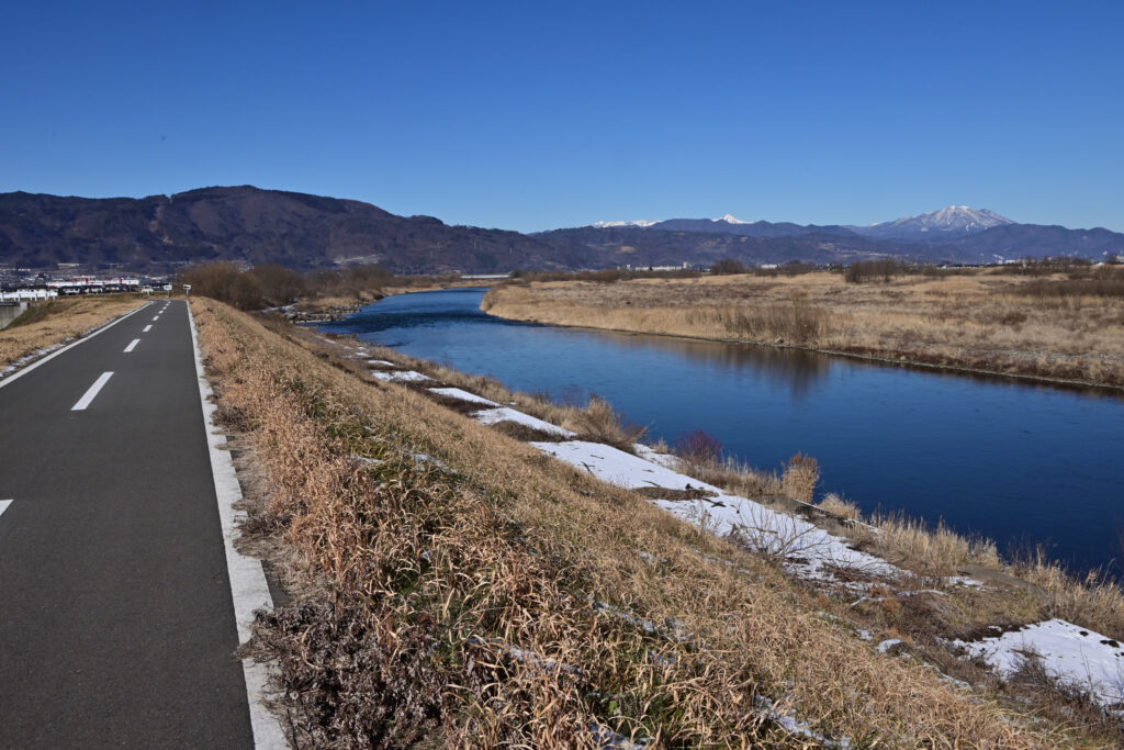 走るルートは雪も凍結も車も無い何時もの千曲川サイクリングロードです。