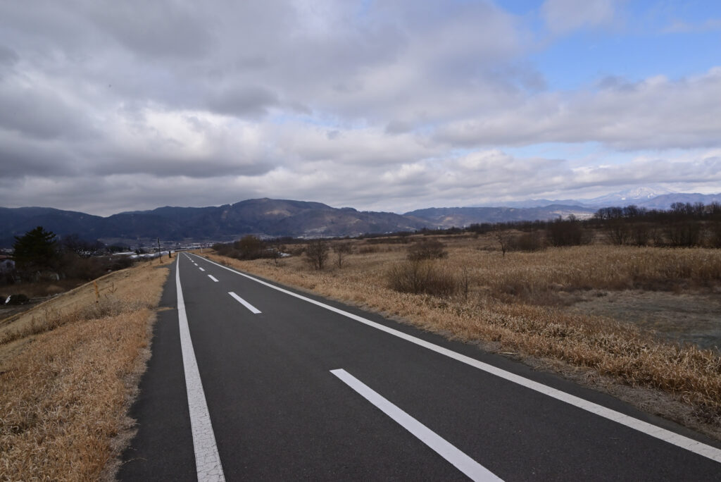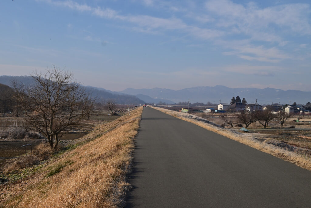 コースは相も変わらず「千曲川サイクリングロード」です。千曲川の土手のコースで日陰になるような樹木はなく、雪が降ってもすぐ溶けるのは良いですが、反面風の時は最悪でもろに風を受けます。アップダウンもなく景色の変化に乏しく飽きますが、冬場走れることはありがたいです。