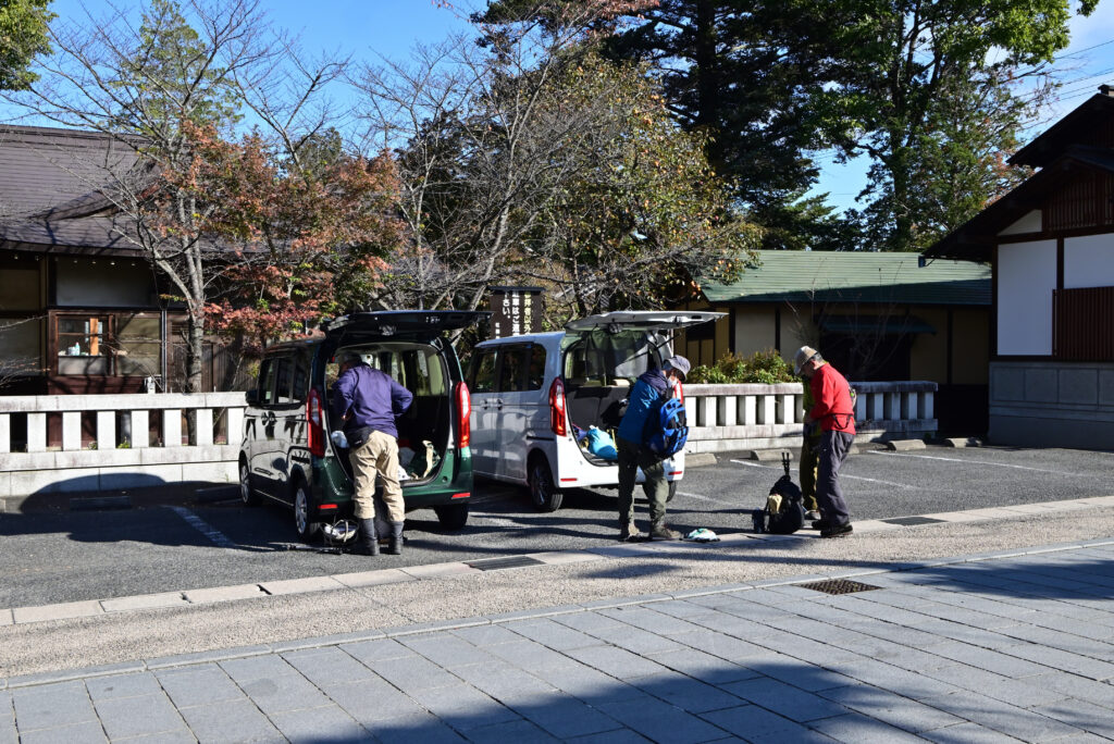 飯山までは車で移動。デポ地は常用している飯山城址です。7時過ぎに家を出て、8時10分ころデポ地に到着。準備をして8時24分に出発。天気は曇りで黒い雨雲もあり、なんと言っても台風22号のお陰で風が強い。かつ昨日と違って異常に寒い。ウインドブレーカーを羽織って出発。
