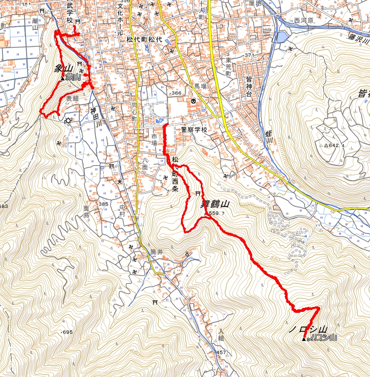 象山神社からノロシ山登山口の白鳥神社の近くの警察学校向かいの公園駐車場まで移動。