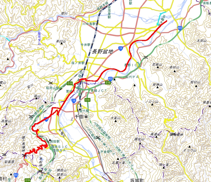 結局。道の駅までは400~500m位なので、ここで諦め、引き返すことに。上山田温泉上流の4つの橋の内名前を忘れた橋を見ることに。