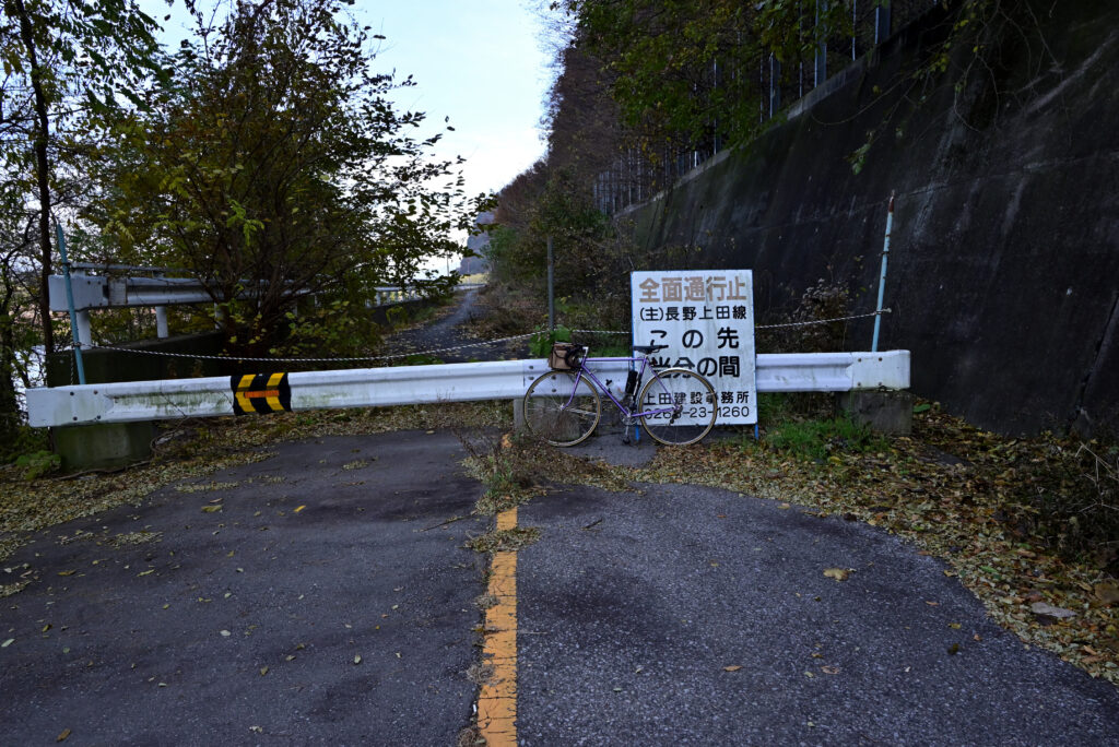 川と道の駅手前に2つのトンネルがあります。比較的新しいトンネルなので、中の照明も完備しています。が、やはりライトが必要。ところが今日は上山田温泉までの予定でライトは不携帯です。トンネルの脇を覗くと旧道が走れそう。